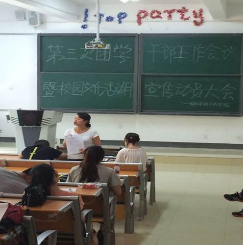 会上,尹老师首先为同学们详细介绍了第十一届“多彩校园.闪亮青春”大学生校园文化活动月7项活动的项目名称、内容、时间。接着,团委书记龙婧解释了其活动目的,她明确指出,各学生干部要及时做好宣传与组织工作,充分调动班级同学积极参与,确保各项活动的按时完成,同时也鼓励同学充分发挥个人特长,展现我院学子蓬勃进取的精神风貌。最后,陈豫魁老师简要介绍了我院2016年暑假“三下乡”社会实践活动的初步设想,对活动相关事宜进行安排部署,并让学生组织宣传动员全院学生积极参与,也鼓励同学们在暑假积极参加“就近就便”社会实践活动。