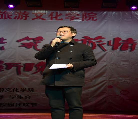 在热情动听的苗族敬酒歌中,迎新晚会正式拉开帷幕。副院长林坤代表学院行政致辞,欢迎2016级新同学加入我们国旅大家庭,并对所有工作人员和表演人员的辛勤工作表示了感谢。党委副书记梅应贤代表院党委、团委致辞,介绍了学院的相关情况和取得的成绩,并宣布晚会正式开始。