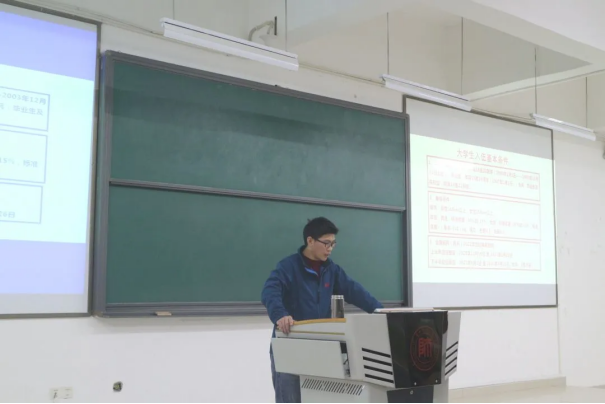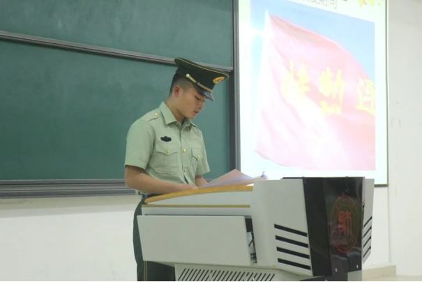 军鹰团退役复学学生宁飞和吴位生两位同学为大家分享了他们的军旅生涯。宁飞同学分享了他在祖国极北之地中俄边境的“黑河好八连”中爬冰卧雪,为祖国站岗、守卫边疆的军旅生活。吴位生同学分享了自己作为一名武警特战兵的4次魔鬼周集训体会。魔鬼式的训练锻炼了体魄,磨练了意志,收获了成长!在他们的宣讲中,有浓浓的战友情、有热血的训练、有军队的精神磨砺,还有个人的成长和思考,充分体现了“青春最美的颜色是迷彩”。同学们认真地听着,颇受感触。
