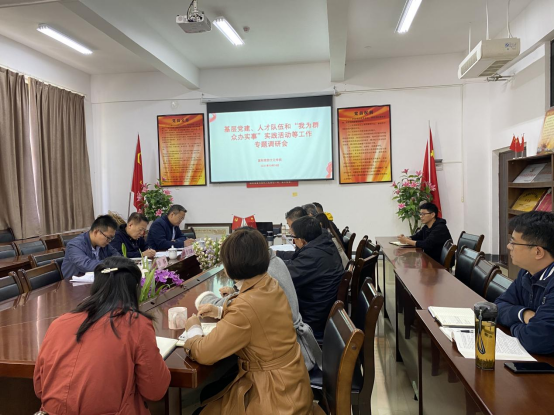 按照校党委工作安排和《基层党建、人才队伍和“我为群众办实事”实践活动等工作专题调研方案》部署,2021年10月18日14:00,校党委副书记刘照惠带队到皇冠登录入口welcome开展基层党建等工作调研,调查组成员胡长华、孙科出席,学院中层干部、科级干部、支部书记代表参加调研。