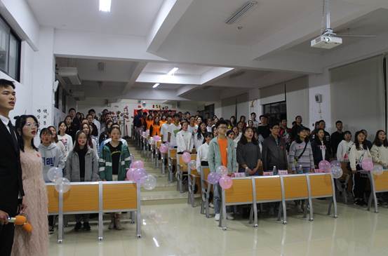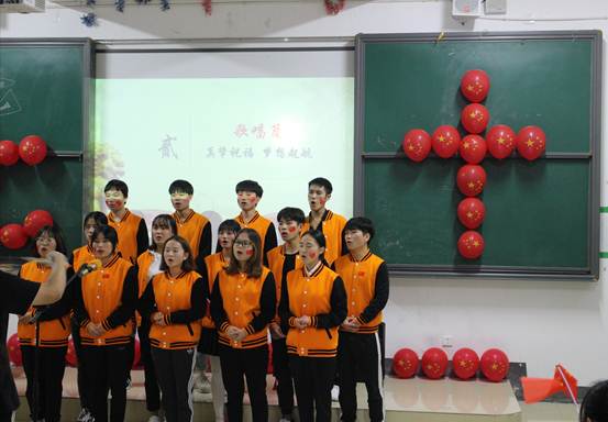 本次活动紧紧围绕“忆七十载峥嵘岁月·谱新时代崭新篇章”主题,将原文节选诵读、歌唱爱国歌曲和知识问答有机穿插结合在一起。首先,由支部书记尹帮锋同志领学了《习近平新时代中国特色社会主义思想学习纲要》、《习近平总书记在国庆“70周年”庆祝大会上的讲话》等节选内容;接着以班级为单位开展“歌唱祖国”合唱比赛,同学们用动人的旋律,轻快的节奏,柔美的歌声,倾诉着对祖国70华诞的祝福和对党的热爱与忠诚;随后,开展了“勿忘历史,不惧将来”的主题学习知识竞答活动,与会党员和同学们踊跃举手,积极参与,气氛热烈,现场高潮迭起,掌声不断。最后,支部全体党员和入党积极分子全体起立满怀激情放声歌唱《我和我的祖国》,抒发对祖国的热爱之情。