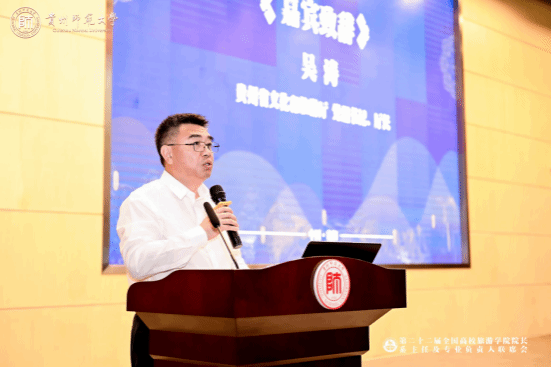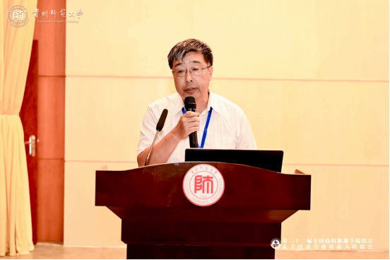 陈云坤从“贵州高等教育新发展新变化”“贵州高等教育补短板强弱项”“贵州旅游产业人才培养”三个方面,向与会嘉宾介绍了贵州高等教育发展现状,以及贵州旅游产业人才培养在学科专业建设、校旅结合、优化高校布局等方面的做法和成效,希望与会嘉宾深化交流合作、汇聚各方智慧,共商共谋贵州旅游产业人才培养,共同研讨文化旅游人才的高质量培养路径,并将这些成果转化为推动实践的动力,共同促进旅游教育事业的繁荣与发展。
