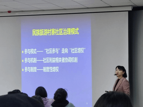 为持续推进学院学风建设,提升旅游专业人才培养质量,皇冠登录入口welcome旅游管理系于12月15日11:00在学院楼5501教室,开展主题为“民族旅游村寨社区治理模式选择及管理策略研究”的专题分享会,本次分享由旅游管理系副教授、硕士生导师王媛媛老师开展。