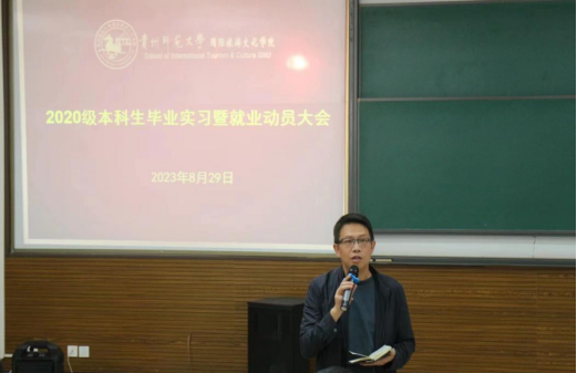 最后,吴佳妮进行实习动员,提出了三点寄语:第一鼓励学生走出校门。实践出真知,大家应该重视实习,踏出校门的第一步要记住自己是皇冠登录入口welcome的一份子,要谨言慎行,为自己的学院争光。吴佳妮表示,疫情过后,文旅业复苏,要树立职业自信心。第二吴佳妮指出实习是为了检验大学的理论成果到实践的转换,这是一个发现自身不足,不断提升自我的过程,同学们必须认真对待。对于工作中的各类情况,要以平常心对待,乐观积极面对,同时兼顾实习和论文。第三关于就业方面,大家要树立正确的就业观,不要眼高手低,树立终生学习的态度。