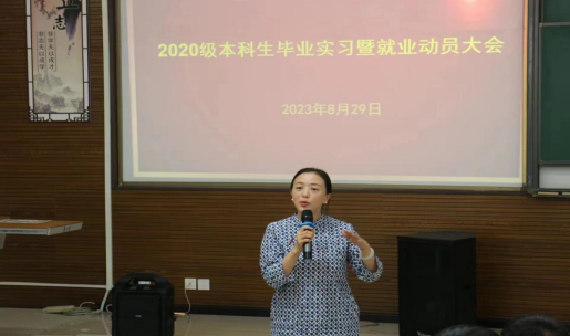 为切实做好2024届本科生毕业实习、论文撰写和就业工作,我院于8月29日中午在我校(花溪校区)GJ6201教室举行2024届本科生毕业实习暨毕业论文撰写指导动员大会,院长吴佳妮、院党委副书记陈明、副院长孙小龙及2024届40余名毕业实习及论文指导老师出席此次会议,2024届全体学生参加会议。本次会议由孙小龙老师主持。